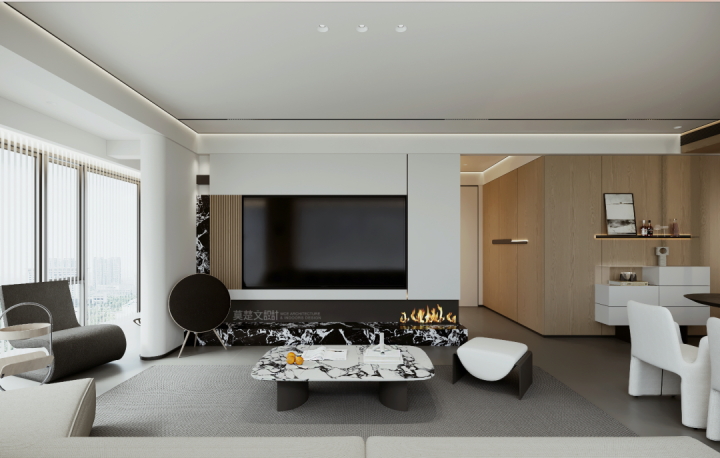 “在这套外滩壹号的设计里,我想回归现代简约的本质——用“减法”去掉繁杂,留下纯粹的高级感与实用功能。从入户的第一印象,到客厅的通透互动,再到卧室的治愈氛围,希望每个空间都能让居者感受到“少即是多”的美好,让家成为卸下疲惫、享受松弛的理想容器,用简洁设计拥抱生活本真。”